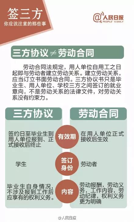 服务 | 签三方协议,你要注意的那些事儿海投、笔试、面试之后,一个绕不开的环节是签“三方协议”,它往往意味着毕业生第一份工作的基本确定,因此要慎之又慎。三方协议与劳动合同有什么不同?签三方前你应该注意哪些细节?可能存在哪些陷阱?