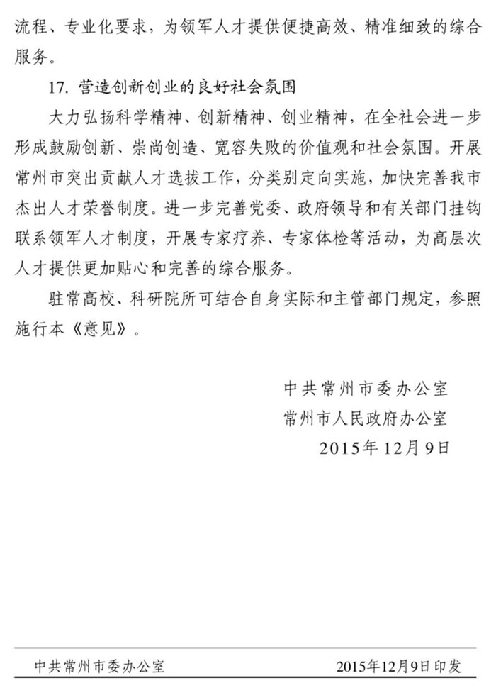 关于印发《常州市突出贡献人才选拔办法》