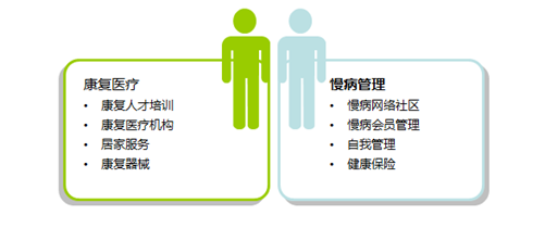 2.3 病后 病后,消费者的主要需求是提高好转率,降低致残率、复发率。这一领域,主要可分为康复医疗和慢病管理。