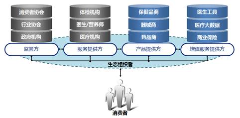 在医疗大数据的指导下,医疗健康服务将更加精准,更加智能。未来,服务层将主要围绕两个场景进行:一是医院端,主要是重大难专疾病的诊治;二是家庭/社区端,围绕着预防干预和小急慢常疾病。也就是说,未来将有80%以上医疗健康服务将发生在家庭/社区端,谁掌握了家庭/社区端,谁将在未来的医疗健康体系中占据主导地位。