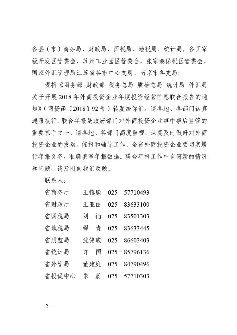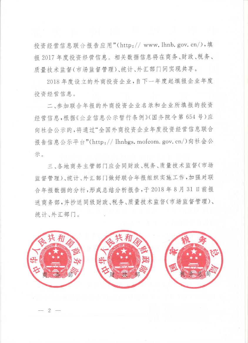 关于开展2018年外商投资企业年度投资经营信息联合报告的通知