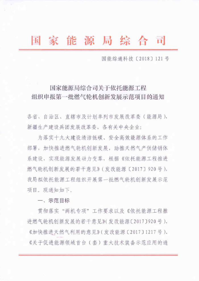 | 关于依托能源工程组织申报第一批燃气轮机创新发展示范项目的通知 | ||||||||||||||||