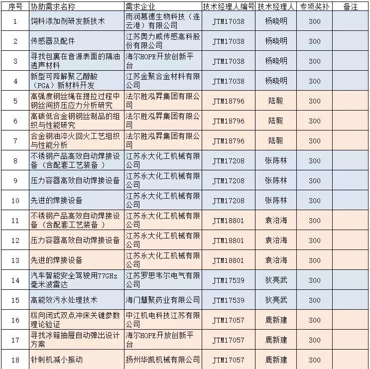 | 首届长三角国际创新挑战赛(江苏赛区)技术需求有效解决方案名单公布! |