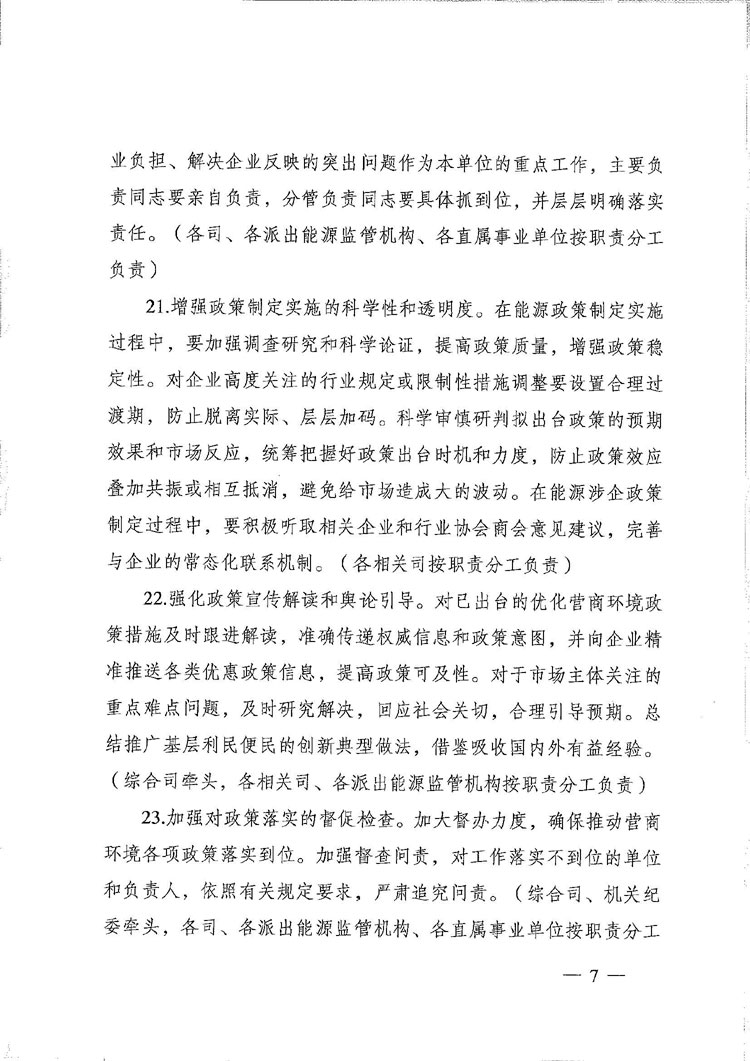 | 国家能源局综合司关于印发进一步推动优化营商环境政策落实实施方案的通知 |