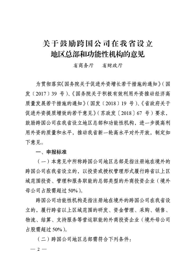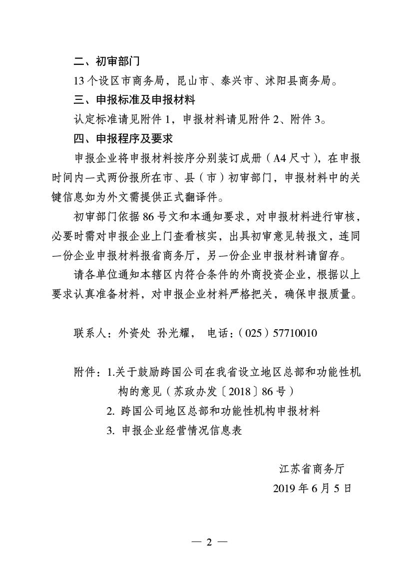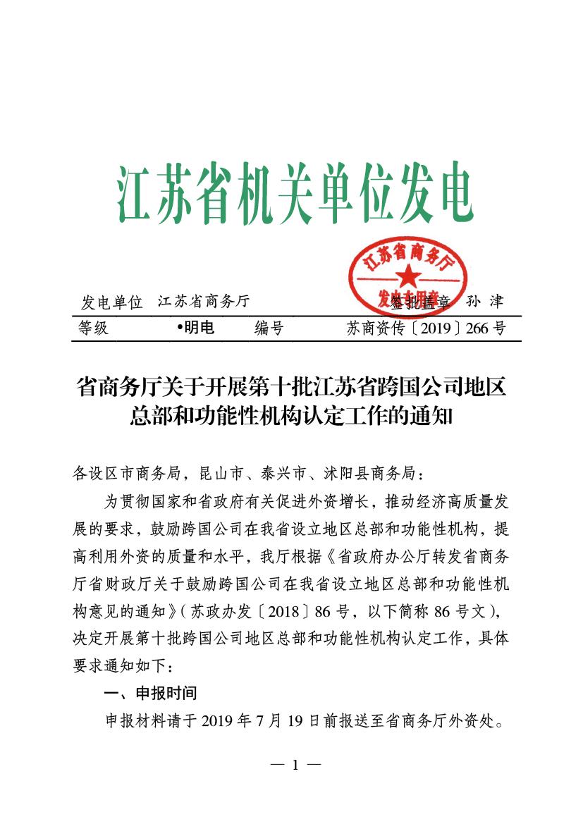 关于开展第十批江苏省跨国公司地区总部和功能性机构认定工作的通知