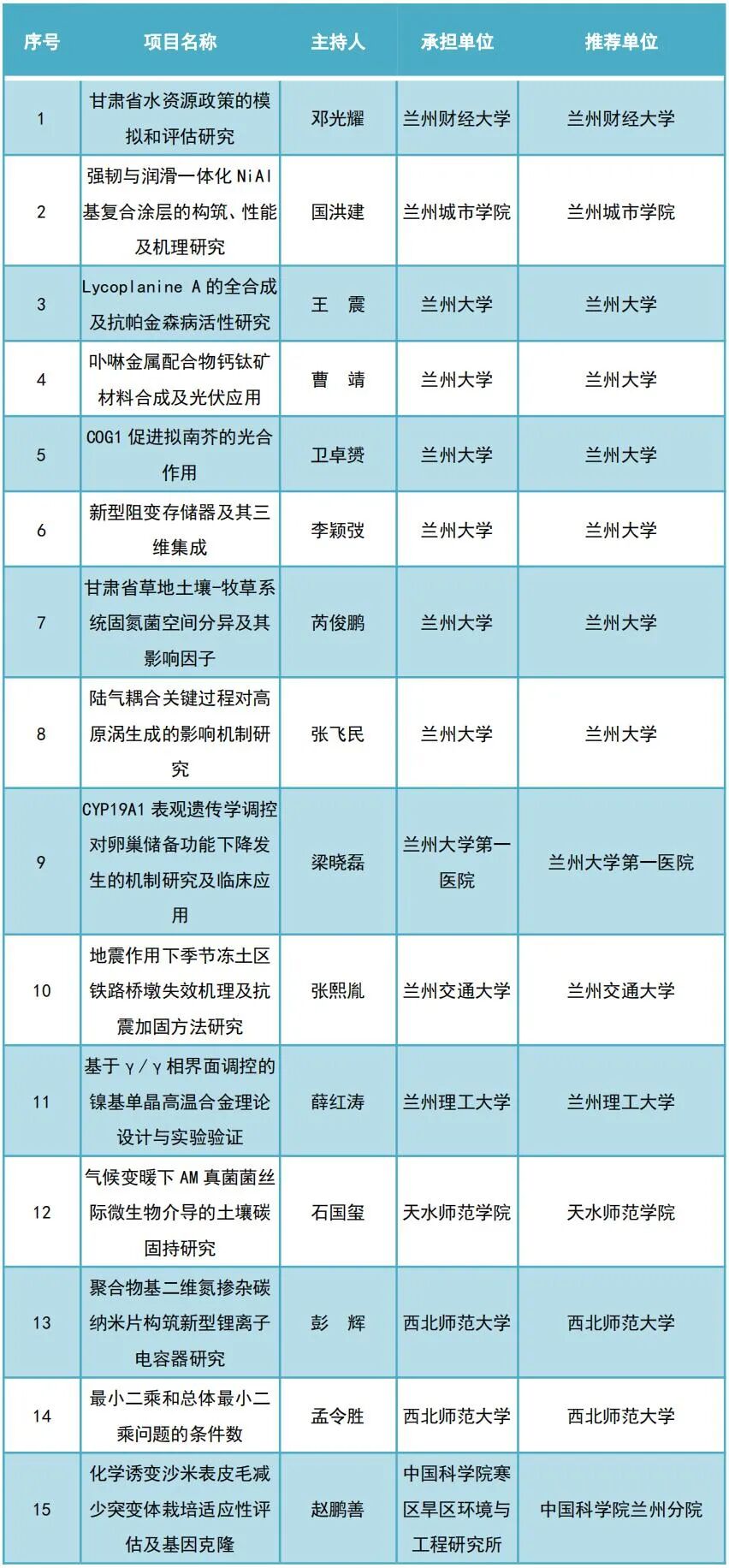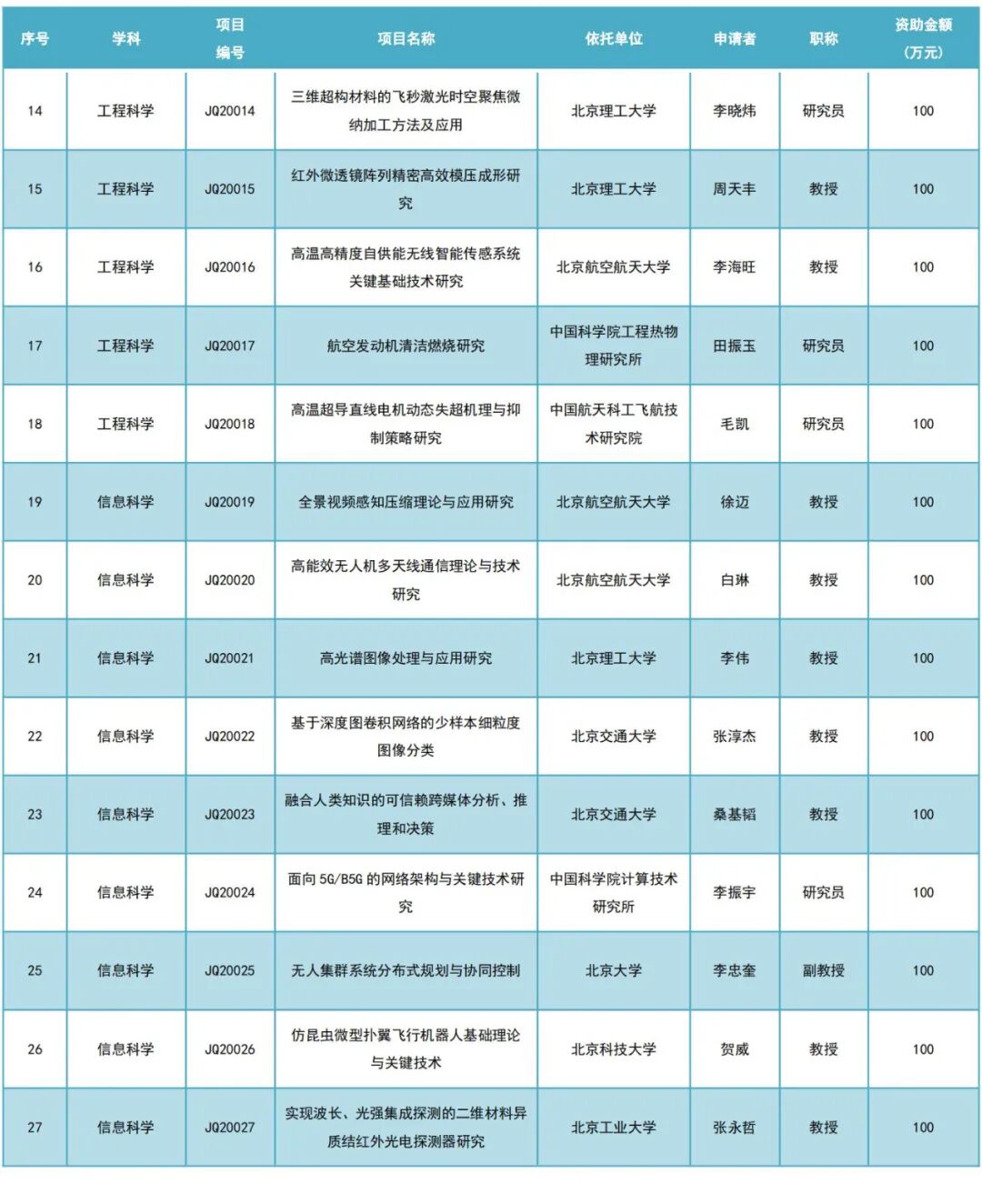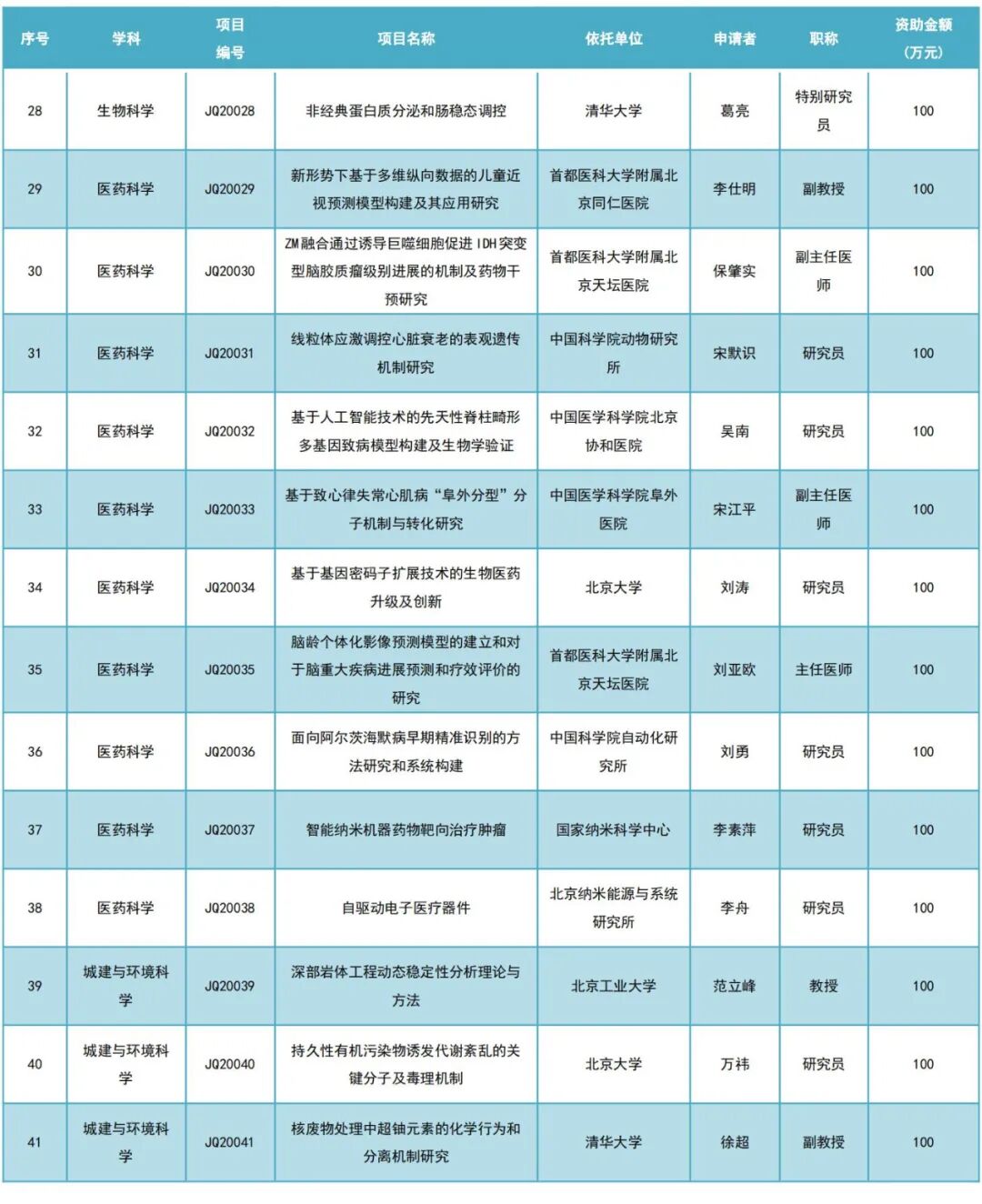 截止目前,国家自然科学基金杰青已经公布拟资助300项名单、国家自然科学基金优青资助625项,部分省份也公布了资助名单,其中,省级杰青已公布428项,省级优青已公布488项人,具体名单如下: 1、国家:杰青300项,优青625项(附部分名单); 2、北京:杰青41项; 3、河南:杰青14项、优青79项; 4、重庆:杰青30项; 5、湖南:杰青59项,优青64项; 6、河北:杰青15项; 7、江苏:杰青50项,优青50项(第一批); 8、黑龙江:杰青20项,优青150项; 9、安徽:杰青40项; 10、辽宁:优青10项; 11、甘肃:杰青19项; 12、浙江:杰青74项;