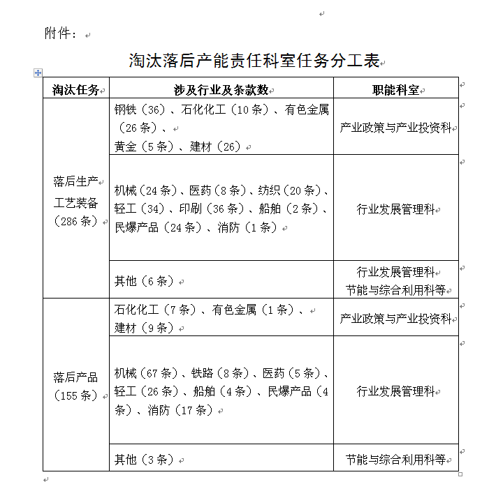 附:淘汰落后产能责任处室任务分工表