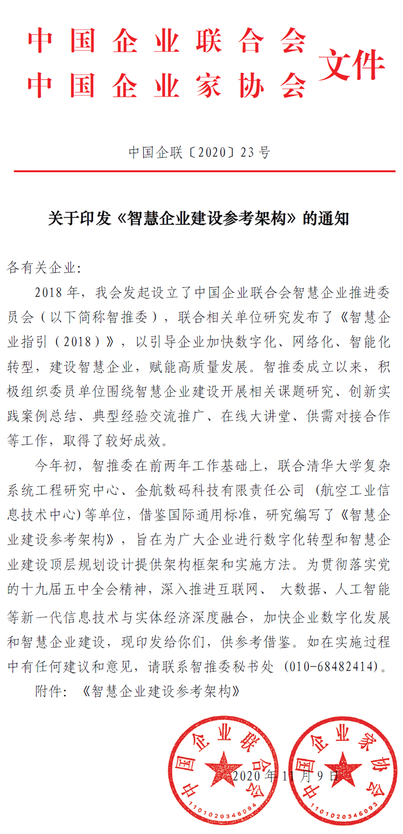 关于印发《智慧企业建设参考架构》的通知