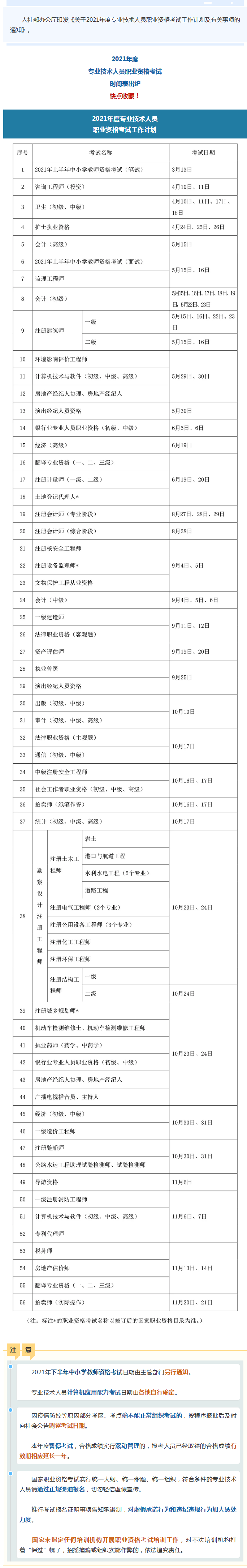 关于2021年度专业技术人员职业资格考试工作计划及有关事项的通知