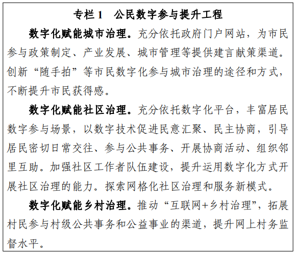 数字素养与技能是数字社会公民学习工作生活应具备的数字获取、制作、使用、评价、交互、分享、创新、安全保障、伦理道德等一系列素质与能力的集合。提升全民数字素养与技能,是顺应数字时代要求,提升国民素质、促进人的全面发展的战略任务,是实现从网络大国迈向网络强国的必由之路,也是弥合数字鸿沟、促进共同富裕的关键举措。为深入贯彻落实习近平总书记关于网络强国的重要思想,实施全民数字素养与技能提升行动,加快数字化发展,建设网络强国和数字中国,根据《中共中央关于制定国民经济和社会发展第十四个五年规划和二〇三五年远景目标的建议》和《中华人民共和国国民经济和社会发展第十四个五年规划和2035年远景目标纲要》,制定本行动纲要。 一、发展形势与重要意义 当前,全球经济数字化转型不断加速,数字技术深刻改变着人类的思维、生活、生产、学习方式,推动世界政治格局、经济格局、科技格局、文化格局、安全格局深度变革,全民数字素养与技能日益成为国际竞争力和软实力的关键指标。全球主要国家和地区把提升国民数字素养与技能作为谋求竞争新优势的战略方向,纷纷出台战略规划,开展面向国民的数字技能培训,提升人力资本水平。党的十八大以来,以习近平同志为核心的党中央作出建设网络强国、数字中国战略决策,加快建设完善数字基础设施,不断提高数字经济、数字社会、数字政府发展水平,持续增强人民群众获得感。同时,也存在顶层设计缺失、数字鸿沟较大、资源供给不足、培养体系尚未形成、数字道德规范意识有待增强等问题,亟需加大工作力度,完善政策措施,整体提升全民数字素养与技能水平。 立足新时代世情国情民情,要把提升全民数字素养与技能作为建设网络强国、数字中国的一项基础性、战略性、先导性工作,切实加强顶层设计、统筹协调和系统推进,注重构建知识更新、创新驱动的数字素养与技能培育体系,注重建设普惠共享、公平可及的数字基础设施体系,注重培养具有数字意识、计算思维、终身学习能力和社会责任感的数字公民,促进全民共建共享数字化发展成果,推动经济高质量发展、社会高效能治理、人民高品质生活、对外高水平开放,为我国开启全面建设社会主义现代化国家新征程和向第二个百年奋斗目标进军注入强大动力。 二、总体要求 (一)指导思想 以习近平新时代中国特色社会主义思想为指导,全面贯彻党的十九大和十九届二中、三中、四中、五中全会精神,深入学习贯彻习近平总书记在庆祝中国共产党成立100周年大会上的重要讲话精神,立足新发展阶段,贯彻新发展理念,构建新发展格局,坚持以人民为中心,落实高质量发展要求,以满足人民日益增长的美好生活需要、促进人的全面发展和全体人民共同富裕为根本目的,坚持深化供给侧结构性改革,以创新驱动、高质量供给引领新需求,着力发展数字基础设施、优化数字资源供给、完善数字环境保障,着力构建覆盖全民、城乡融合、公平一致、可持续、有韧性的数字素养与技能发展培育体系,着力拓展全民数字生活、数字学习、数字工作、数字创新四大场景,激发全民建设网络强国和数字中国的积极性、主动性、创造性,提升全民数字化适应力、胜任力、创造力,增强人力资本积累,拓展人口质量红利,厚植创新发展新优势,为全面建设社会主义现代化国家提供强大的数字动力支撑和坚实的人力资源基础。 (二)基本原则 坚持以人为本,普惠共享。秉持发展为了人民、发展依靠人民的理念,推动数字教育资源、数字技能培训、数字产品和信息服务等高质量发展和开放共享,不断提高人民群众的获得感、幸福感、安全感。 坚持统筹谋划,系统推进。遵循数字化发展规律,针对不同类型的群体、不同年龄阶段的公民,强化顶层设计和统筹谋划,整合资源,筑牢基础,补齐短板,整体提升全民数字学习、工作、生活和创新的素养与技能。 坚持深化改革,协调发展。聚焦提升全民数字素养与技能过程中的突出矛盾和难点问题,创新政策供给,破除体制机制障碍,不断弥合城乡、区域和人群间的数字鸿沟,营造良好的数字学习和创新创业环境,促进区域协调、城乡融合发展。 坚持正确导向,保障安全。统筹发展和安全,强化底线思维和风险意识,坚持正能量是总要求、管得住是硬道理、用得好是真本事,主动防范化解风险,有力有序推进全民数字素养与技能提升。 (三)发展目标 到2025年,全民数字化适应力、胜任力、创造力显著提升,全民数字素养与技能达到发达国家水平。数字素养与技能提升发展环境显著优化,基本形成渠道丰富、开放共享、优质普惠的数字资源供给能力。初步建成全民终身数字学习体系,老年人、残疾人等特殊群体数字技能稳步提升,数字鸿沟加快弥合。劳动者运用数字技能的能力显著提高,高端数字人才队伍明显扩大。全民运用数字技能实现智慧共享、和睦共治的数字生活,数字安全保障更加有力,数字道德伦理水平大幅提升。 展望2035年,基本建成数字人才强国,全民数字素养与技能等能力达到更高水平,高端数字人才引领作用凸显,数字创新创业繁荣活跃,为建成网络强国、数字中国、智慧社会提供有力支撑。 三、主要任务与重点工程 (一)丰富优质数字资源供给 1.优化完善数字资源获取渠道。加快千兆光网、5G