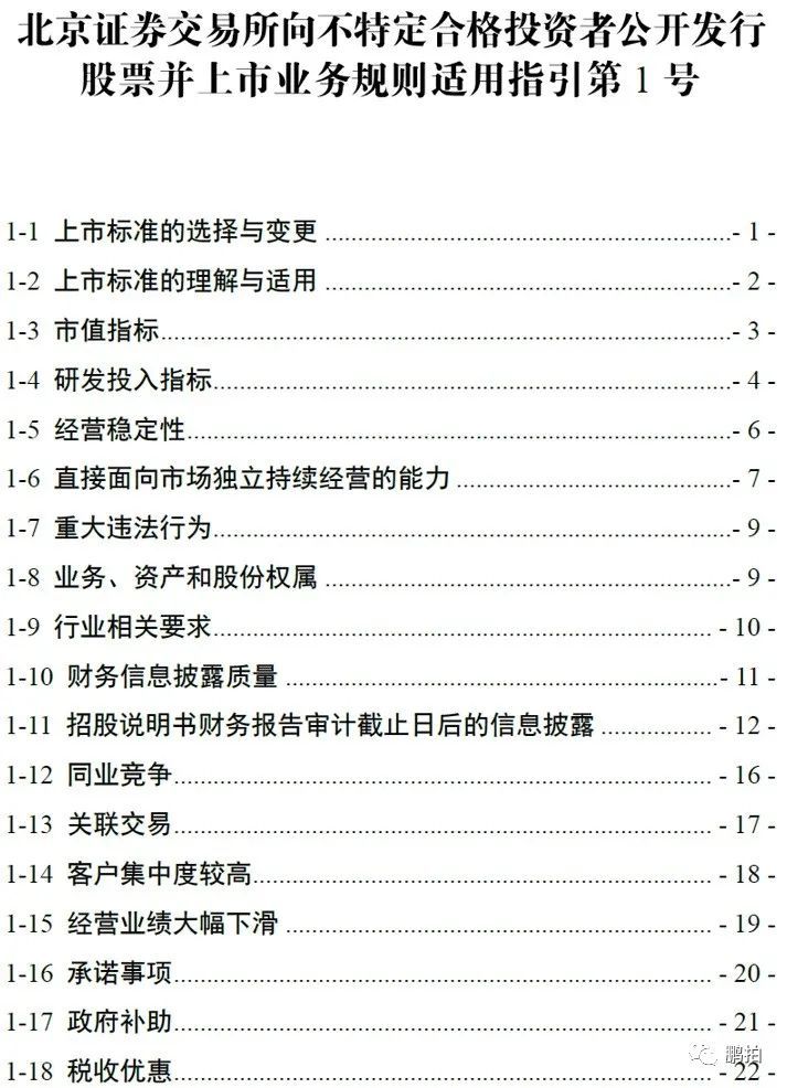 | 《北京证券交易所向不特定合格投资者公开发行股票并上市业务规则适用指引第1号》 |