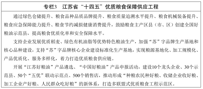 | 江苏省“十四五” 粮食流通和物资储备发展规划 |