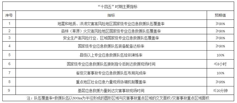 应急管理部 “十四五”应急救援力量建设规划 为深入贯彻落实习近平总书记关于应急管理工作重要指示批示精神,提升重大安全风险防范和应急处置能力,进一步明确“十四五”期间应急救援力量建设思路、发展目标、主要任务、重点工程和保障措施,根据《中华人民共和国突发事件应对法》《“十四五”国家应急体系规划》,制定本规划。 本规划中的应急救援力量是指参与生产安全事故、自然灾害应急救援的专业应急救援力量、社会应急力量和基层应急救援力量。专业应急救援力量主要包括抗洪抢险、地方森林(草原)灭火、地震和地质灾害救援、生产安全事故救援、航空应急救援等力量。社会应急力量是指从事防灾减灾救灾工作的社会组织和应急志愿者,以及相关群团组织和企事业单位指导管理的、从事防灾减灾救灾等活动的组织。基层应急救援力量是指乡镇街道、村居社区等组建的,从事本区域灾害事故防范和应急处置的应急救援队伍。 国家综合性消防救援队伍及地方专职消防队伍依照有关规划进行建设。 一、规划背景 (一)取得的成效。 党的十八大以来,在以习近平同志为核心的党中央坚强领导下,我国应急管理事业改革发展取得历史性成就,统一指挥、专常兼备、反应灵敏、上下联动的应急管理体制初步形成,应急救援能力现代化迈出坚实步伐,专业应急救援力量、社会应急力量、基层应急救援力量建设不断加强,对国家综合性消防救援队伍的支撑协同作用进一步突显。 专业应急救援力量体系基本形成。组建了应急管理部自然灾害工程应急救援中心和救援基地,完善国家级危险化学品、隧道施工应急救援队伍布局,建成地震、矿山、危险化学品、隧道施工、工程抢险、航空救援等国家级应急救援队伍90余支计2万余人,各地建成抗洪抢险、森林(草原)灭火、地震和地质灾害救援和生产安全事故救援等专业应急救援队伍约3.4万支计130余万人,形成了灾害事故抢险救援重要力量。 社会应急力量建设积极稳步发展。在民政等部门注册登记的社会应急力量约1700余支计4万余人,发挥其志愿公益、贴近群众、响应迅速、各有专长的优势,参与山地、水上、航空、潜水、医疗辅助等抢险救援和应急处置工作,在生命救援、灾民救助等方面发挥了重要作用。据不完全统计,2018—2020年,全国社会应急力量累计参与救灾救援约30万人次,参与应急志愿服务约180万人次,已逐步成为应急救援力量体系的重要组成部分。 基层应急救援力量持续加强巩固。全国乡镇街道建有基层综合应急救援队伍3.6万余支、105.1万余人,基层应急能力标准化建设稳步推进,社会参与程度不断提高,探索出行之有效的基层应急救援力量建设“济宁模式”,逐步构建起基层应急救援网格体系,较好发挥了响应快速、救早救小作用,成为日常风险防范和第一时间先期处置的重要力量。 政策标准规范建设成效初显。《应急救援航空体系建设方案》印发实施,国家级自然灾害工程应急救援队伍建设、社会应急力量建设等制度规范和技术标准制定工作稳步推进;四川、陕西、湖南、浙江等省应急管理部门相继出台应急救援队伍建设管理、救援补偿等制度,应急救援力量建设标准化、响应规范化、救援专业化进程加快。 (二)面临的形势。 “十四五”时期,我国发展仍然处于重要战略机遇期。以习近平同志为核心的党中央坚持以人民为中心的发展思想,统筹发展和安全两件大事,对防范化解重大风险挑战、推进应急管理体制改革、提高应急救援能力等作出全面部署,为加强应急救援力量建设提供了根本遵循;各部门、各地区认真贯彻党中央、国务院决策部署,全面加强应急救援力量建设,积极推进应急管理体系和能力现代化;全社会广泛参与、支持应急救援力量建设,形成了应急救援力量建设发展的良好社会环境;新一轮科技革命和产业变革创新发展,新技术、新装备的不断涌现为应急救援力量建设形成坚实支撑。 同时也要看到,我国自然灾害多发频发,安全生产仍处于爬坡过坎期,积累和新增的安全隐患风险大量存在,极端天气灾害进入多发期,防灾减灾基础薄弱,应急救援力量建设处于打基础、攻难关、上水平的关键阶段,发展不平衡不充分问题仍然突出。 应急救援能力不足。现有抗洪抢险、地方森林(草原)灭火、地震和地质灾害救援等专业救援能力还不能满足复杂灾害救援需要,社会应急力量和基层应急救援力量还处在起步阶段,航空救援、工程抢险、勘测保障等新型救援力量数量不足,全社会参与应急救援的局面还没有完全形成。 力量布局不够均衡。在中西部自然灾害易发多发、经济欠发达地区,特别是四川、云南、青海、西藏等灾害严重省份,专业应急救援力量、社会应急力量和基层应急救援力量亟待加强。 人才科创能力不强。现代化的指挥人才和实战经验丰富的专家不足,装备智能化、轻型化、模块化水平不高,灭火大飞机等关键技术装备亟待突破。 保障机制有待完善。指导支持应急救援力量建设的政策法规标准体系尚未形成,保障应急救援力量持续健康发展的政府投入、考核评估、救援补偿、奖惩激励等方面制度有待健全。 二、总体要求 (一)指导思想。 坚持以习近平新时代中国特色社会主义思想为指导,深入贯彻党的十九大和十九届历次全会精神,坚持人民至上、生命至