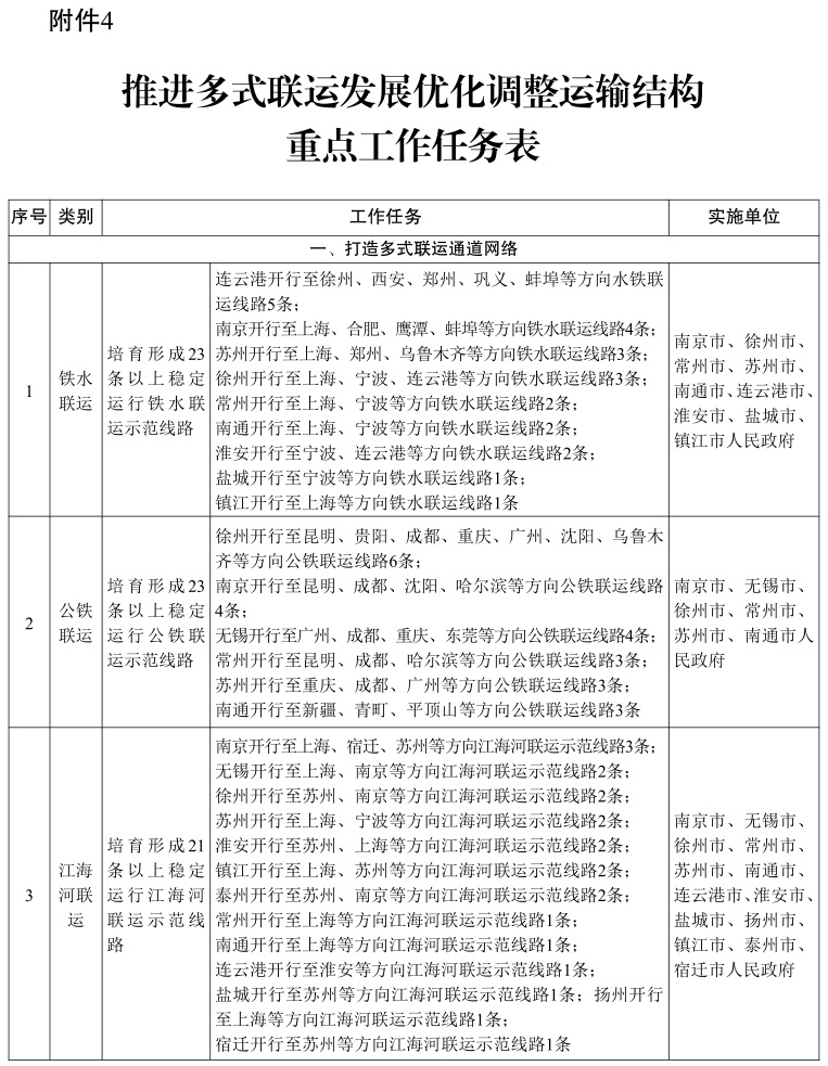 江苏省推进多式联运发展优化调整运输结构 行动计划(2022-2025年)