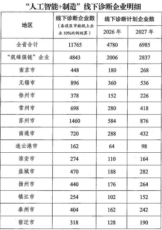 | 江苏省“人工智能+制造”诊断工作方案(2026-2027) |